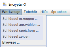 Schlüssel erzeugen ... Schlüssel auswählen ... Schlüssel speichern ... Schlüssel zeigen |