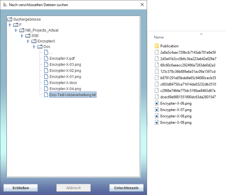 über die sich wie im Explorer die verschlüsselten Dateien mit ihren