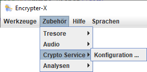Die Funktion dafür ist über den Hauptmenüpunkt Zubehör und den Menüpunkt Crypto Service ▶ Konfiguration ... erreichbar. |