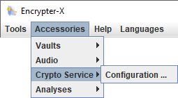 The function for this can be accessed via the main menu item Accessories and the menu item Crypto Service ▶ Configuration ... can be reached. |