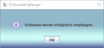 Ebenso wie auf der Senderseite muss zum Einrichten des Empfängers der Menüpunkt Schlüssel empfangen ... angeklickt werden, woraufhin sich der Dialog zum Einrichten des Empfängers öffnet. |